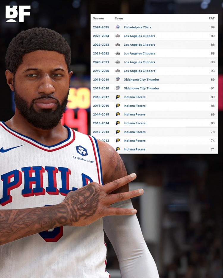 2K26能力值排名71-100:乔治81分第92名 追梦第90 弗拉格第79